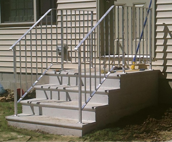 All Unit Steps have anchors cast in the concrete to securely mount our aluminum stock step railings. Step railings can also be powder coated a color to accentuate your house or building.