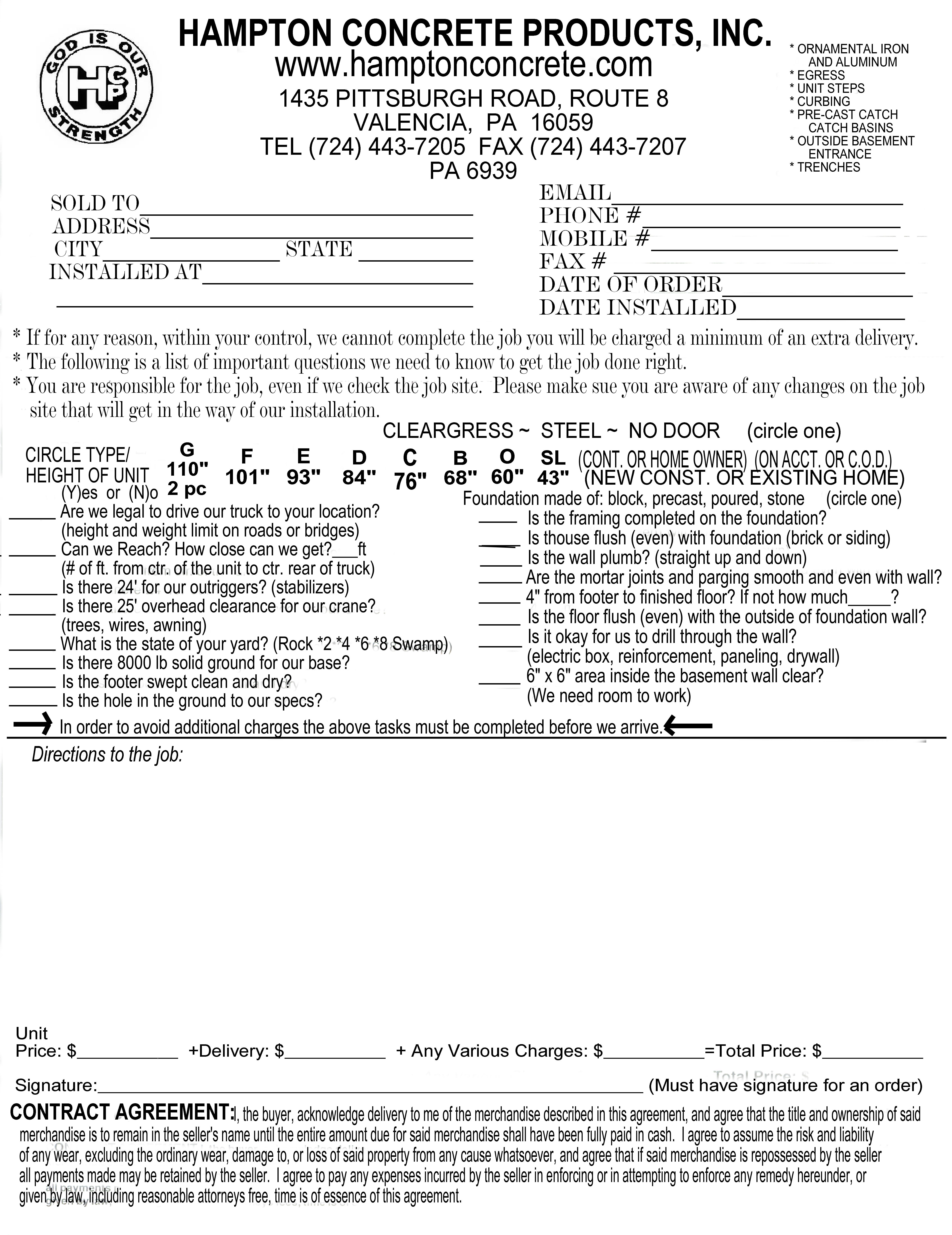 | HEIGHT | LENGTH | FOOTER TO GRADE | DOOR HEIGHT | UNIT WIDTH | CONCRETE & STEEL DOOR PRICE | CONCRETE & CLEAR DOOR PRICE |