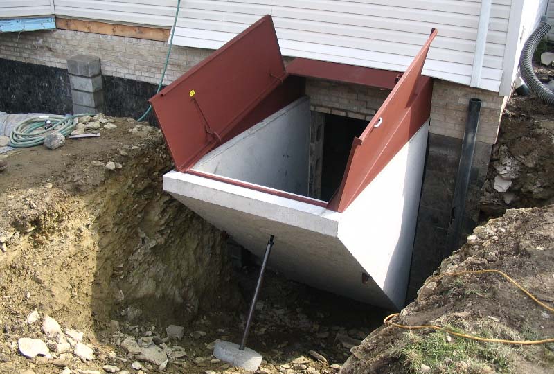 Our pre-cast basement entrance meets code for egress. Increase the value of your home and provide a direct way out in case of an emergency. Proper basement entrances open up valuable space for family activities, eliminates tracking through first floor rooms, and saves damage to upstairs walls and woodworking.