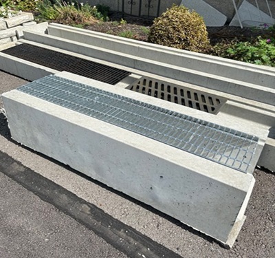 Our precast trench drains are perfect for draining water from driveways or walks. They are reinforced with 1/2" rebar and are available in various sizes, and can be topped with different grate options. Trench drains are suitable for driveways, athletic fields, pedestrian areas, and car parks.